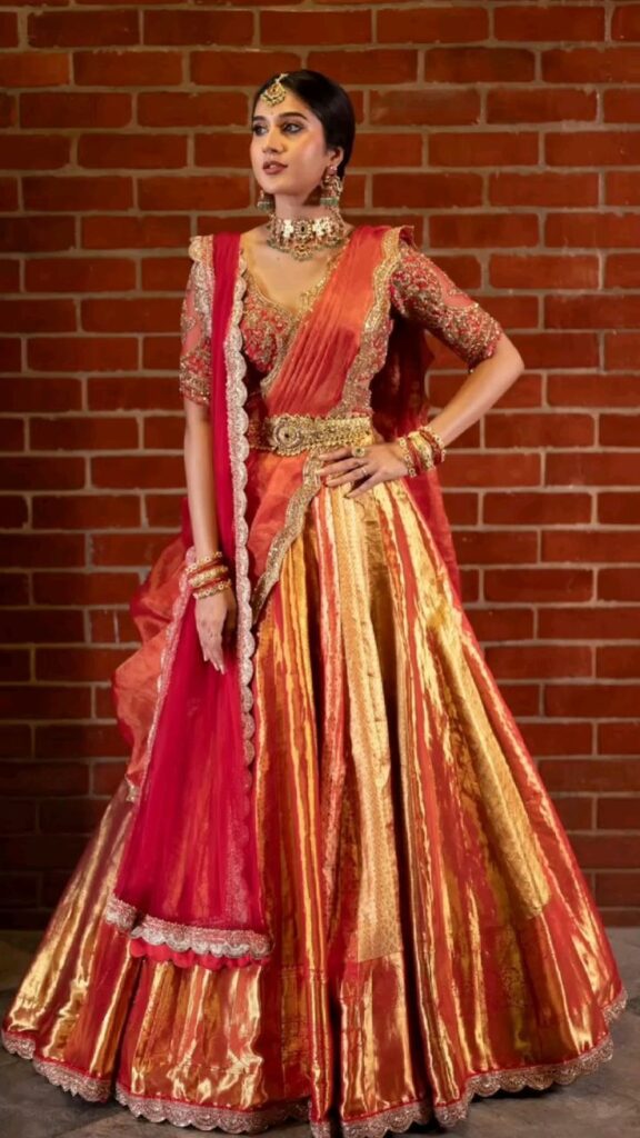 Tamil brides increasingly choose embellished lehengas for reception events while retaining sarees for the muhurtham ceremony. This reflects broader pan-Indian bridal influences while honouring Tamil identity.