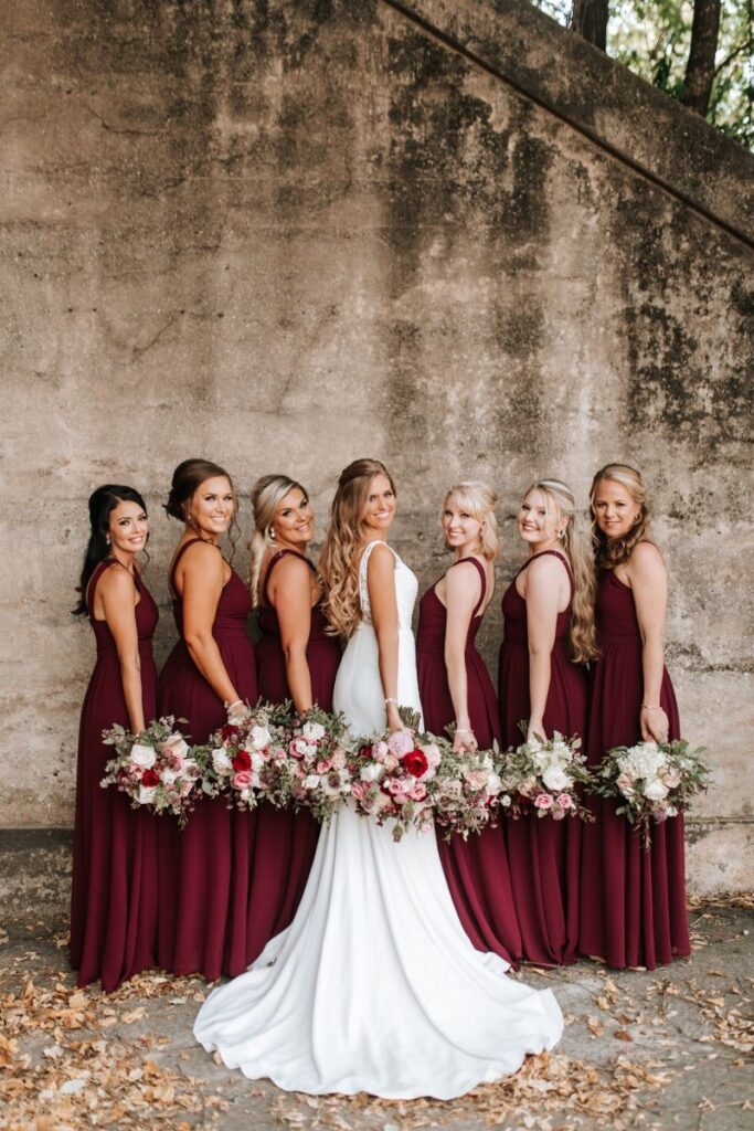 Classic and elegant, this works well for formal weddings. Ensure the fabric and cut flatter everyone, or allow slight dress variations.