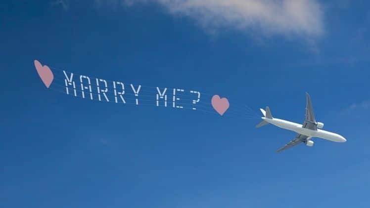 - A fireworks show with the words “Will you marry me?” lighting up the sky.
