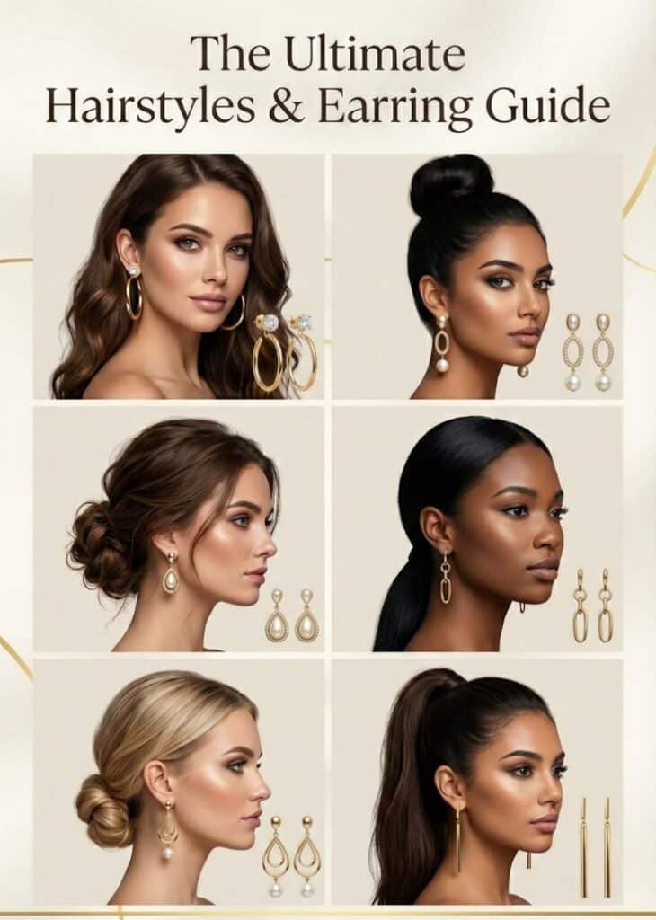 Large earrings may get lost in the hair. Opt for visible sparkle — but avoid excess weight. Studs or mid-length drops work best.