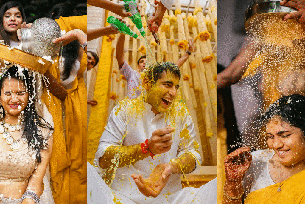 On the morning of the wedding, both the bride and groom are bathed in turmeric and scented oils to purify and prepare them for the sacred union.