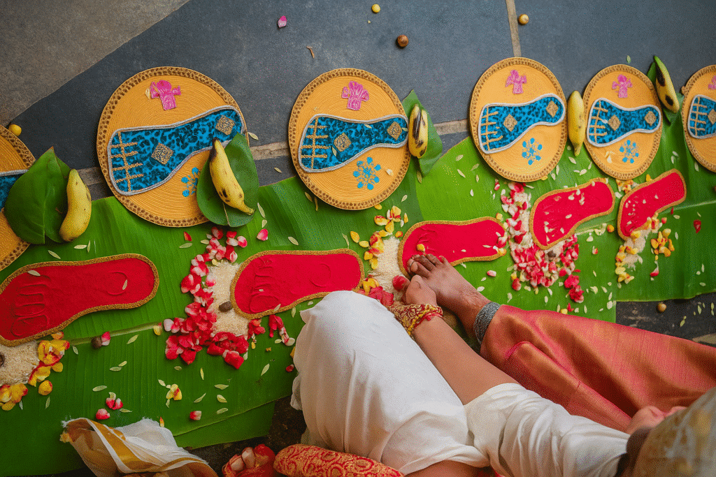 After the wedding, this playful set of games helps the couple ease into married life and allows the two families to interact(Traditional Tamil Wedding). From finding rings in a bowl of water to smearing sandal paste, it’s full of laughter.