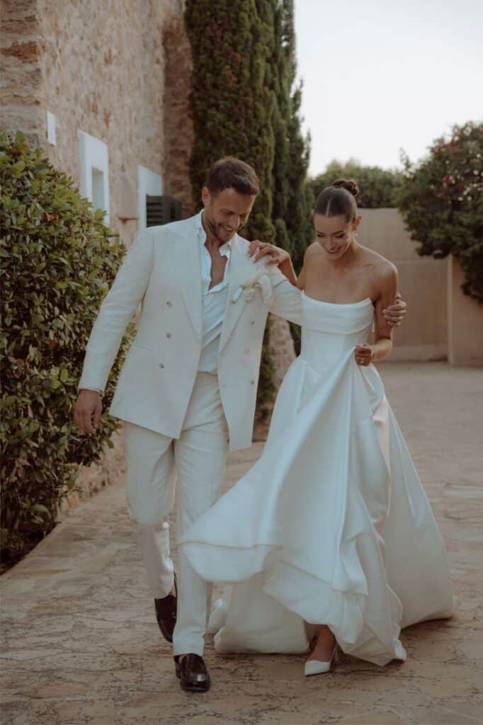 - Removing the blazer post-ceremony for relaxed reception styling