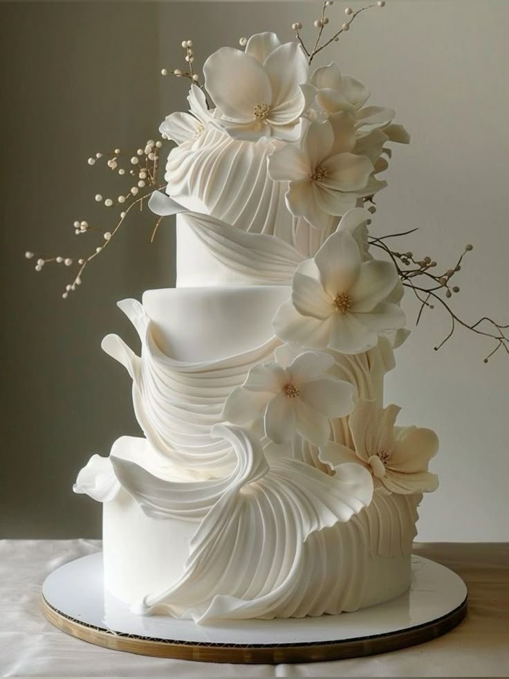 Fondant allows for smooth finishes and sharp edges, making it ideal for detailed designs, intricate lace patterns, or geometric structures. While heavier than buttercream, fondant creates a polished, elegant look.